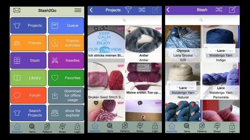 Stash2Go primarily lets you connect to the largest community for knitters and crocheters online, Ravelry. It gives access to knitting and crocheting projects and lets you manage your own projects as well as your supplies of yarn and needles.